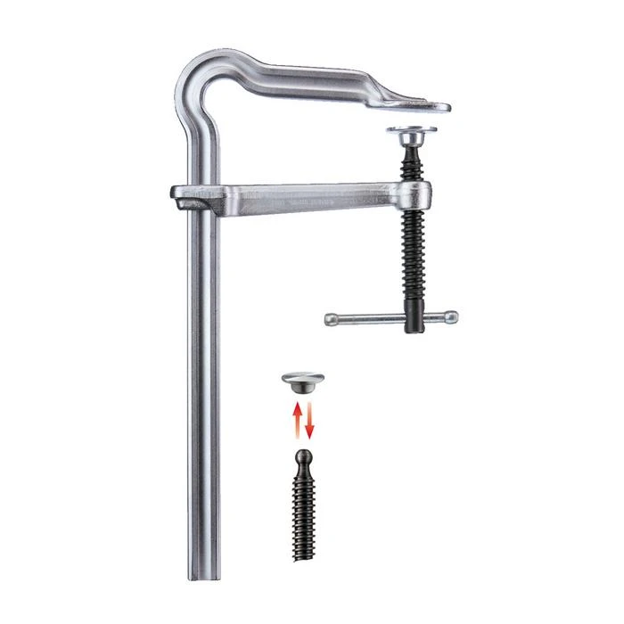 - Fixed jaw and sliding arm are constructed of tempered steel for resilient clamping