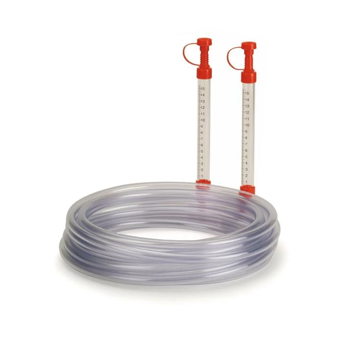 - Spirit level for transferring heights, egfrom one room to anotherTwo plastic cylinders with printed scale (150 mm)Plastic hose with a diameter of 10 mm