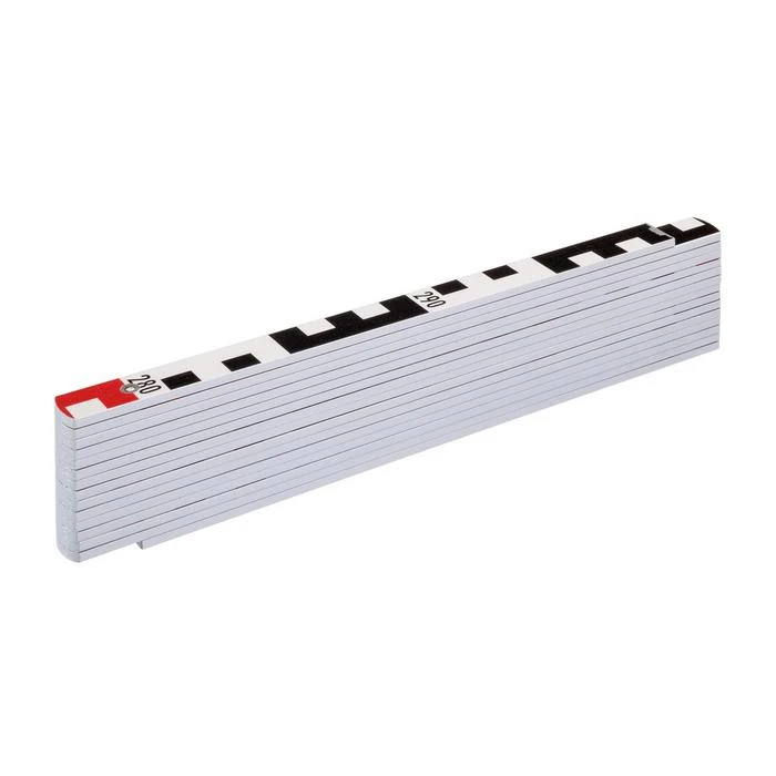 - Rule with long-distance visible scale (‘E’ gradations) for use with an optical level, classic metric scale on rear