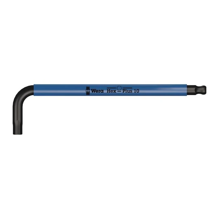 High quality Wera L-keys with colour coded, convenient plastic sleeve. This means that the tool is quickly accessible and the ergonomic and pleasant handle is easy on the hands even at low temperatures. The Hex-Plus profile offers a larger contact surface within the screw head. This reduces the notching effects to a minimum and almost completely eliminates the risk of destroying the screw recess. The ball-end on the long arm allows for reliable working even in difficult installation situations. The holding function holds screws securely on the tool. The BlackLaser surface treatment provides outstanding surface protection, even against corrosion, and a long service life. The tools are quickly to hand thanks to the laser-engraved and thereby wear-resistant size markings on the L-keys.